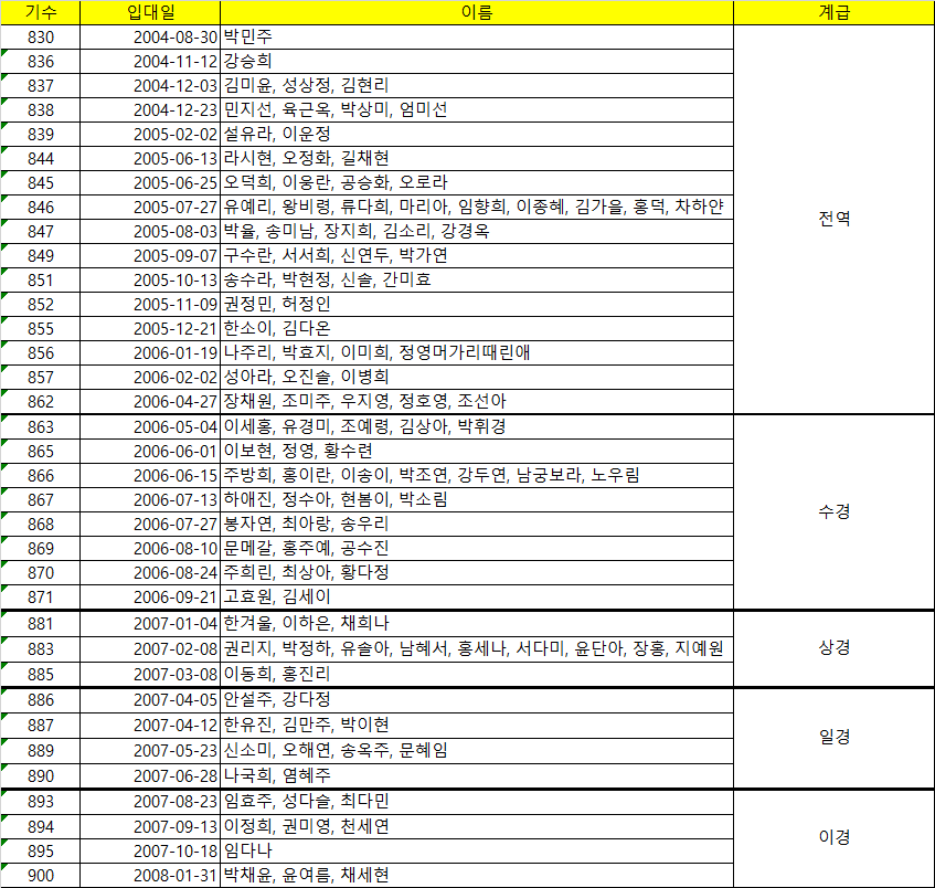 830기 입대일을 8월 30일에서 20일로 수정했읍니다.