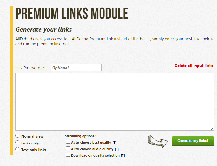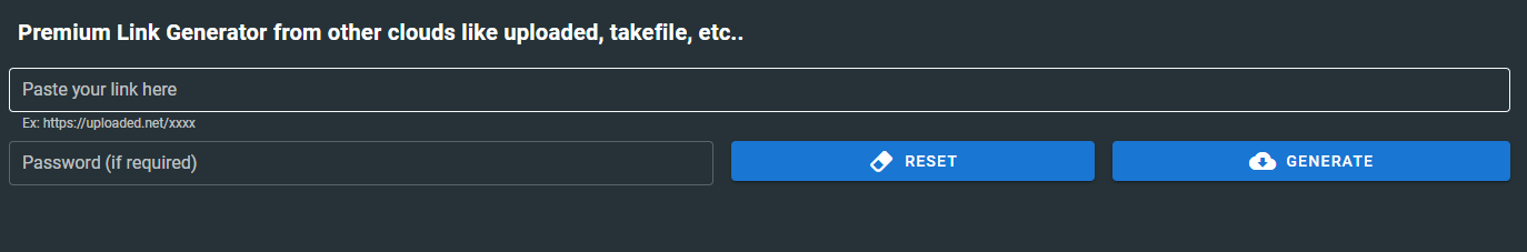 Easily generate premium links from file hosting sites without signing up. Supports Uploaded.net, RapidGator, Datafile, Mega, Netload and many more.
