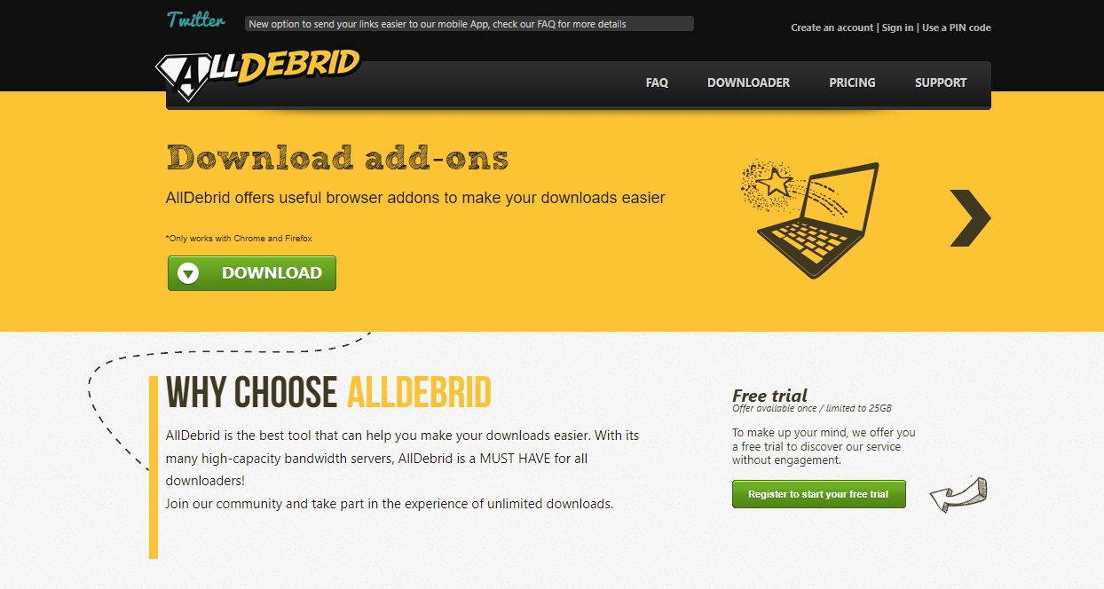 WHY CHOOSEALLDEBRID AllDebrid is the best tool that can help you make your downloads easier. With its many high-capacity bandwidth servers, AllDebrid is a MUST HAVE for all downloaders! Join our community and take part in the experience of unlimited downlo