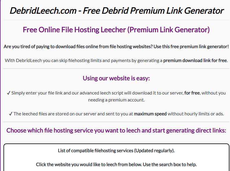 ProLeech.Link Cheapest and most easy way to download your files from filehosts with only one click. Found anywhere else cheaper plans, let us know and we will beat that price! Check our features below for more information... What is ProLeech.Link? ProLeech