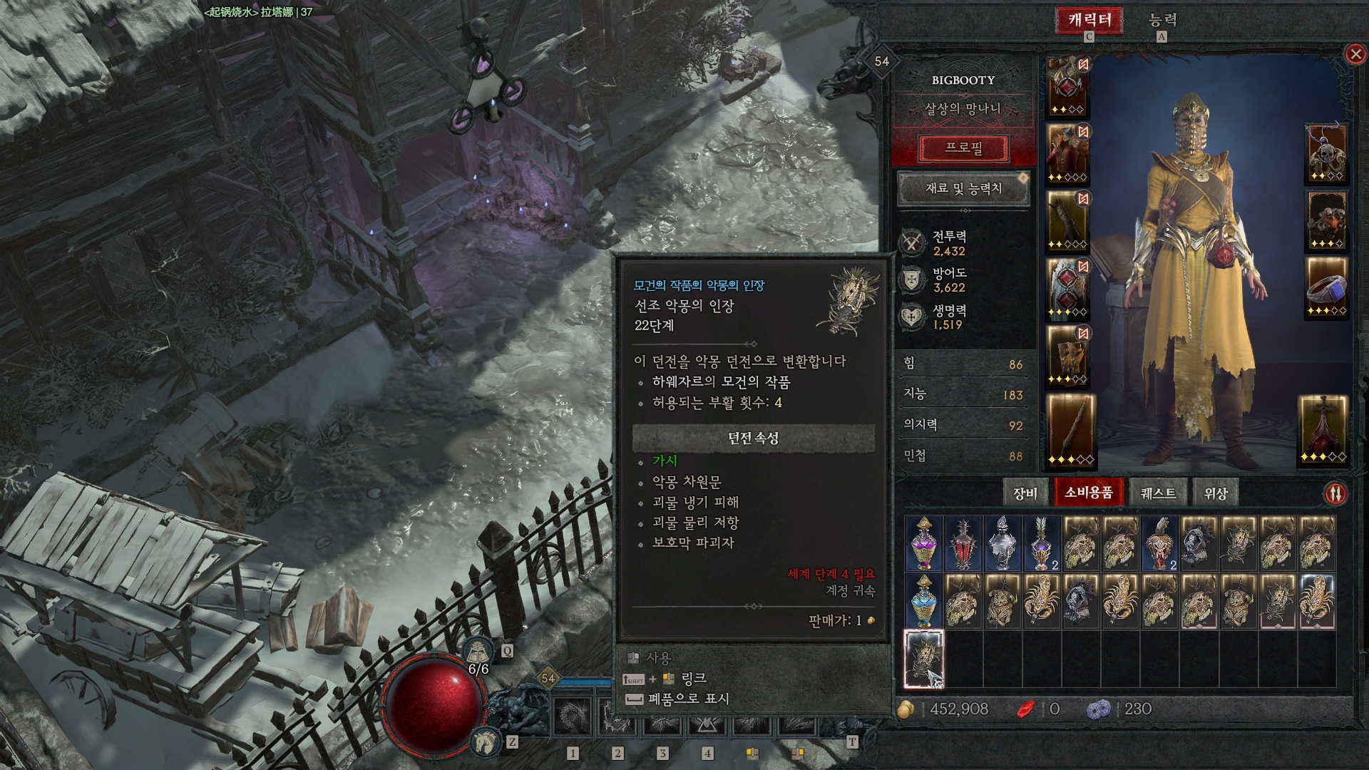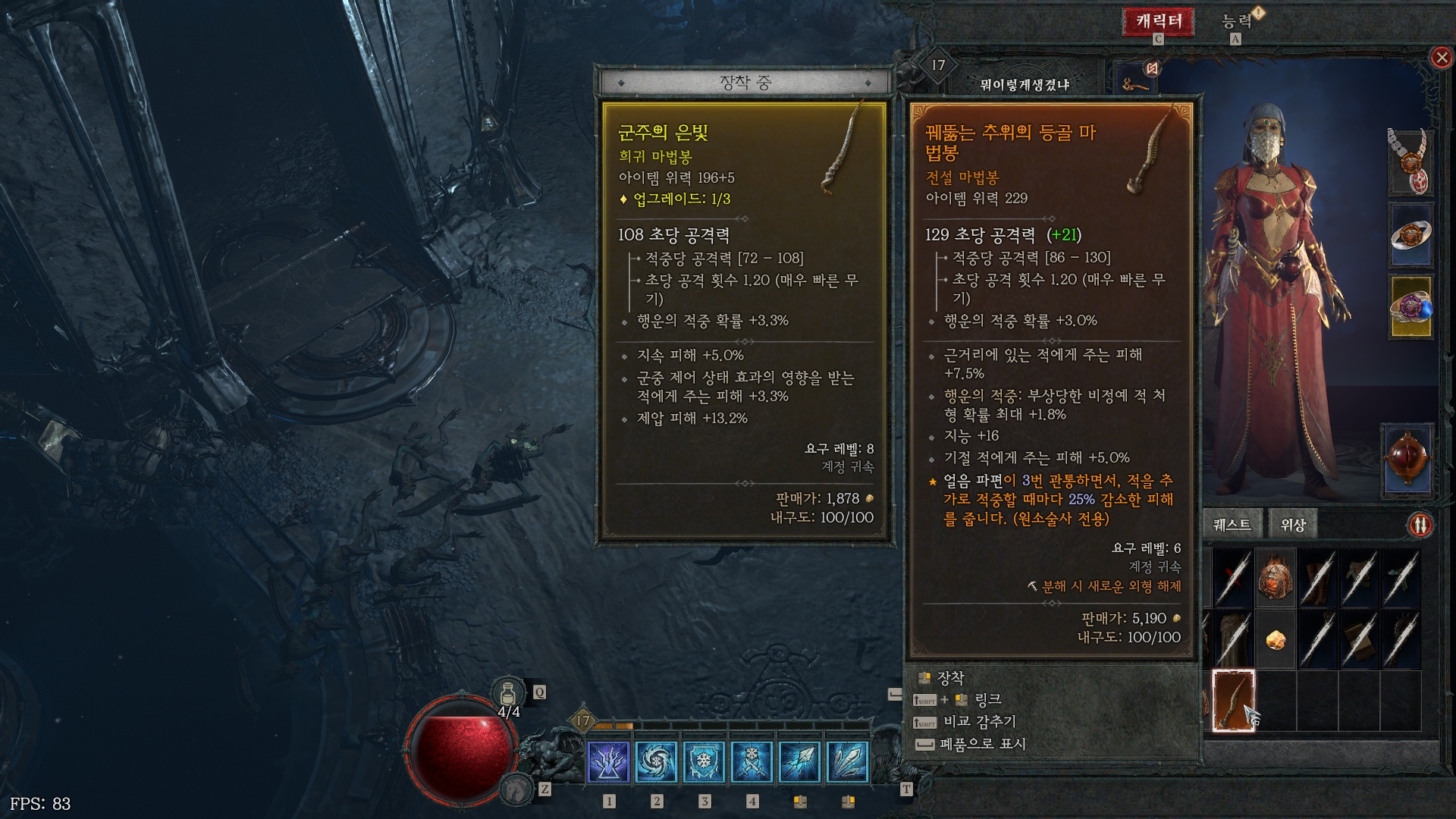 동생을 놀렸다가 오히려 내가 미안해져버렸다 ㅋㅋㅋ 악몽던전에서 나온 신성 고유템. 고유옵션은 글쎄? 고유지팡이도 나왔지만 그... 연쇄번개 옵션이라 못씀 ㅠㅠ 악던 1단 첫클리어 데미지는 딸리지만 고유옵션이 좋다 선조인장 한번 만들어봤는데 22단이 떴다 7월 21일부터 시즌캐릭터를 만들었는데 또 법사다. 스탠처럼 히드라 섞은게 아닌 순수 냉기법사 필드보스 잡는데 너무아픔 ㅋㅋㅋㅋ