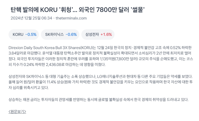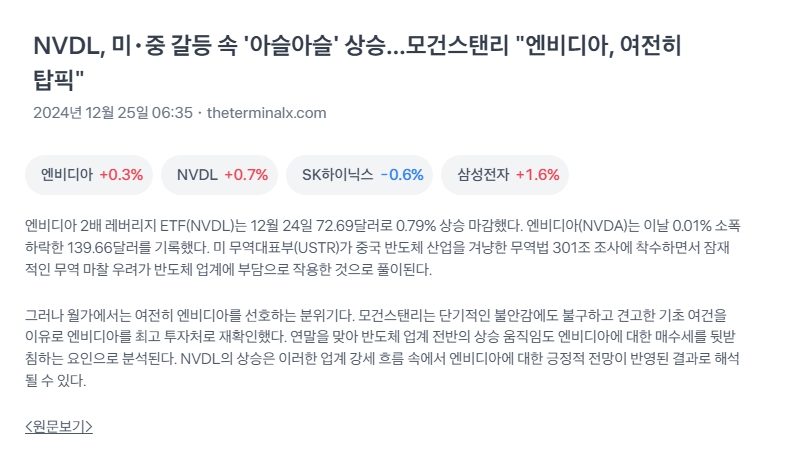| 2024년 12월 28일 보유주 관련 뉴스 (0) | 2024.12.28 |
