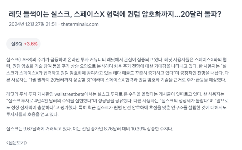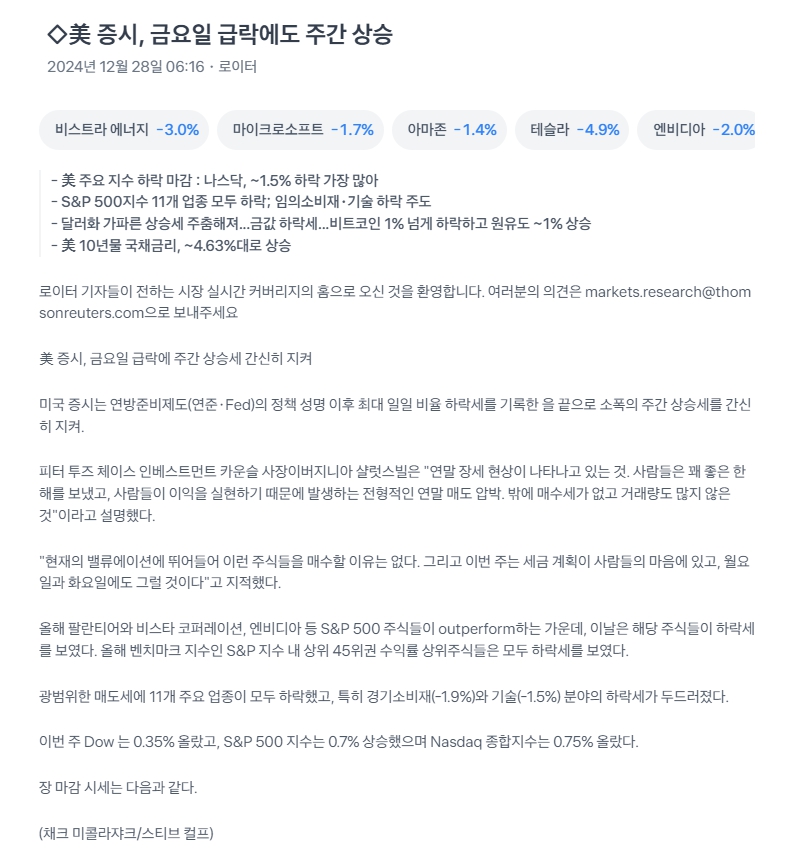 | 2024년 12월 27일 보유주 관련 뉴스 (0) | 2024.12.27 |