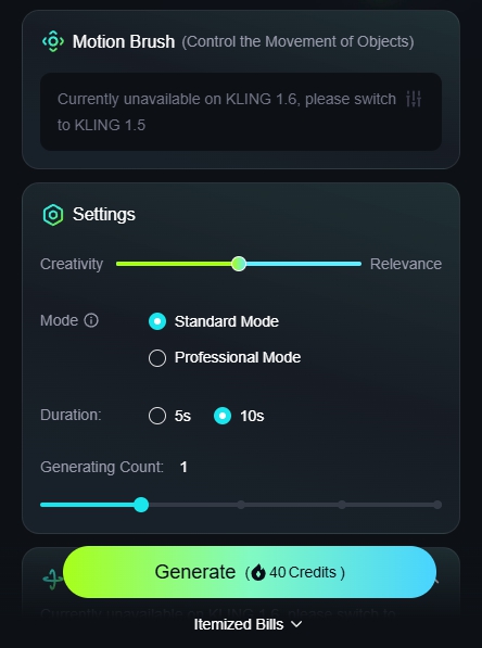 크레딧 단가. 스탠다드 모드 10초 영상 만드는데 40크레딧이 소모됩니다. 프로페셔널 10초는 70크레딧