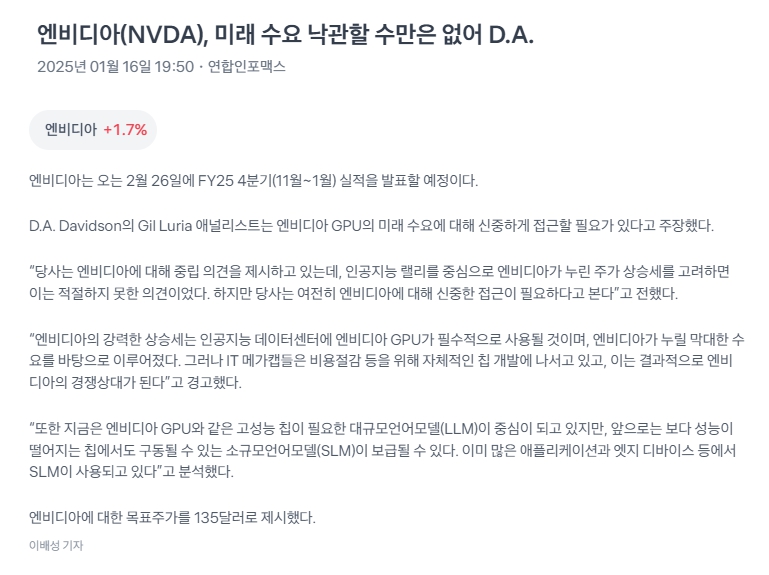 | 2025년 1월 16일 보유주 관련 뉴스 (0) | 2025.01.16 |