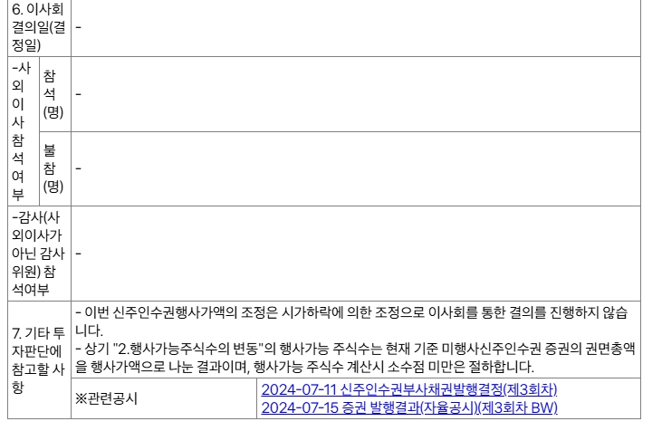 - 이는 신주인수권이 현재 시장에서 매력도가 다소 낮아질 수 있음을 의미합니다. 일반 투자자 입장에서는 시장에서 직접 주식을 구매하는 것이 더 유리합니다.