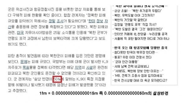 - K-9이 살상반경이 50fm이라면, 이건 살상 무기가 아니라 물리학 실험 장비.