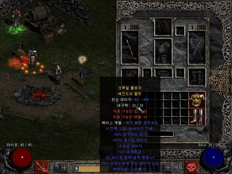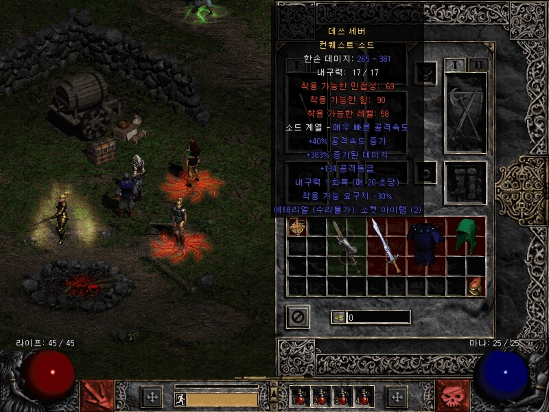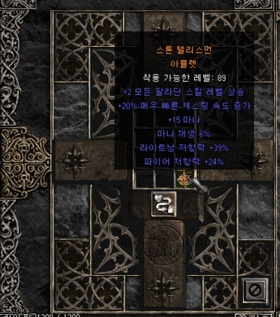 에테내회 미지컬 소드 문의결과 사용하는 베이스라고 하며, 풀스옵 280증뎀에 질딘용이라 팔라스킬도 유옵, 듀얼에 내회까지 붙어 질딘이 로룬박고 사용할 수 있는 아이템이다. 물론 질딘에게는 고뇌가 최강이지만 레어무기도 아직 그 수요는 존재한다. 다만, 공속의 부재가 템가격을 깎아먹는 요인인데, 공속이 있었다면 6자리도 바라볼 수 있었지만.. 아쉽게도 5자리 수준의 가격을 형성한다는 댓글이 달렸다. 바바 삥아뮬 마흡이 없지만 힘 라이프가 각각 25(~30) 51(~60)에 올레 17(~20) 라레 +37(~40) 삥 76(~80)이 붙었다. 옵션이 올건 다 왔는데 수치가 으뜸에서 조금씩 빠진다. 그래도 ㅎㄷㄷ한 수치라고 평가받았다. 삥은 80이 만땅이고 라이프 대신 마흡이 왔다면.. 마흡에 집착하는 이유는 ..