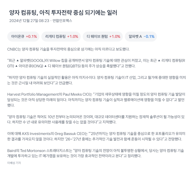 보유주식들 간단종목정보(2024년 12월 25일 기준)