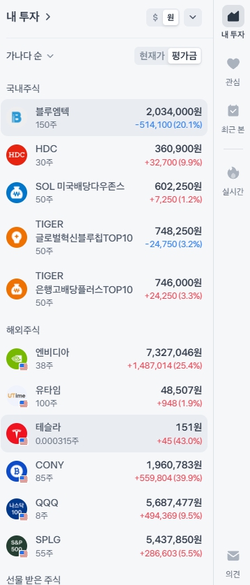 주식 카테고리에 올리는 글 매주 포트폴리오 및 주식 관련 소식만 게재할 예정이며추가매수 및 매도는 대량뿐 아니라 1주단위 소량 매매도 있어서카테고리 내 내용물이 난잡해지고 또한 다량의 글 작성으로 인한 저품질화 문제가 있어앞으로는 올리지 않음 주식 2024.11.28