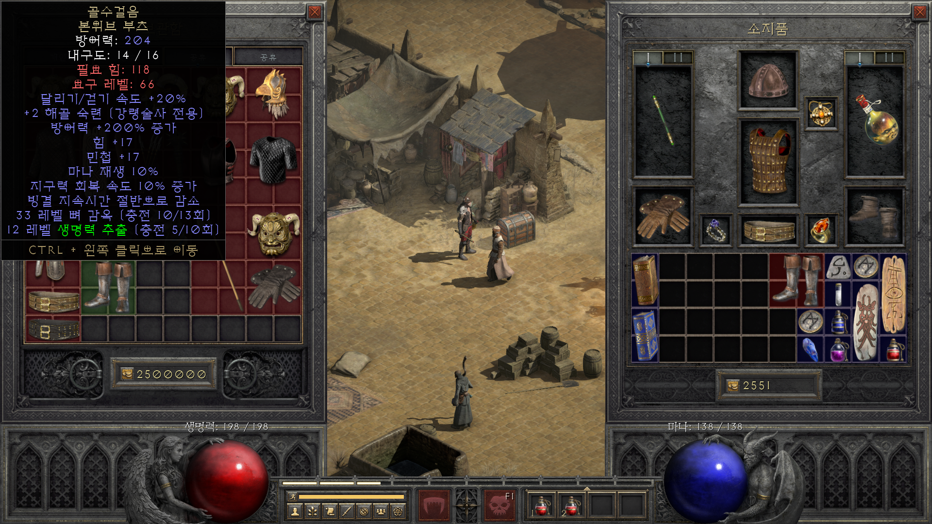 Mal 룬을 추가로 먹어서 바로 크리스탈 소드에 작업한 콜투암스. 는 4오더 ㅋㅋㅋㅋㅋㅋㅋㅋㅋㅋㅋㅋㅋㅋㅋㅋㅋ협동전 같이하던 아는 동생이 던져주고 간 저항용 아마횃불. 그래도 올스탯과 스킬이 맨땅캐릭인 나에게는 쏠쏠하다.메로우워커 유니크 본위브 부츠. 조폭네크용인데 부캐 육성을 위해 창고에 쟁여두기로 했다.룸코팔 룸코팔 신나는노래카우방에서 준 렘 룬. 웰쓰나 트렛셔리를 만드는 데 사용한다.팔라 전투1스킬에 피 26붙은 이름하야 열....전피참. 검색해보니 시세는 약 벡스룬 선