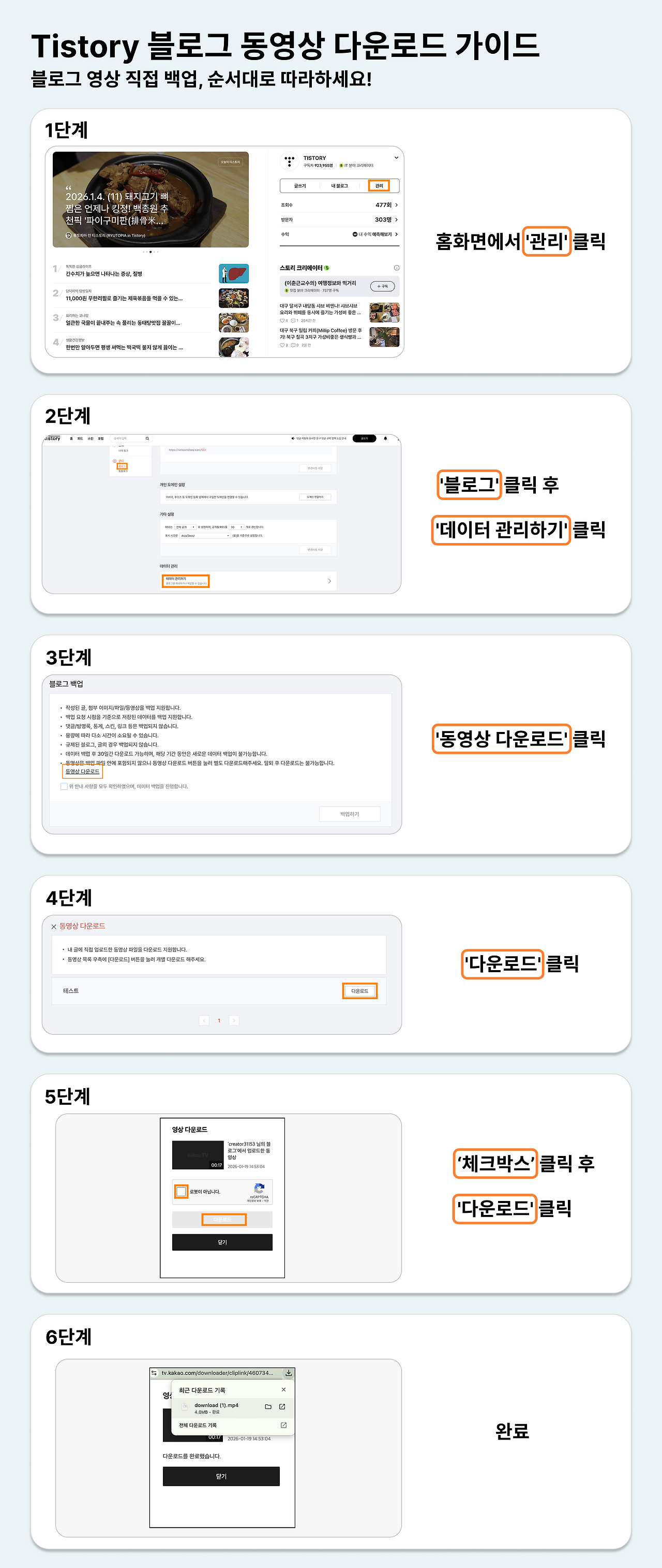블로그 → 데이터 관리하기 → 동영상 다운로드 → 다운로드