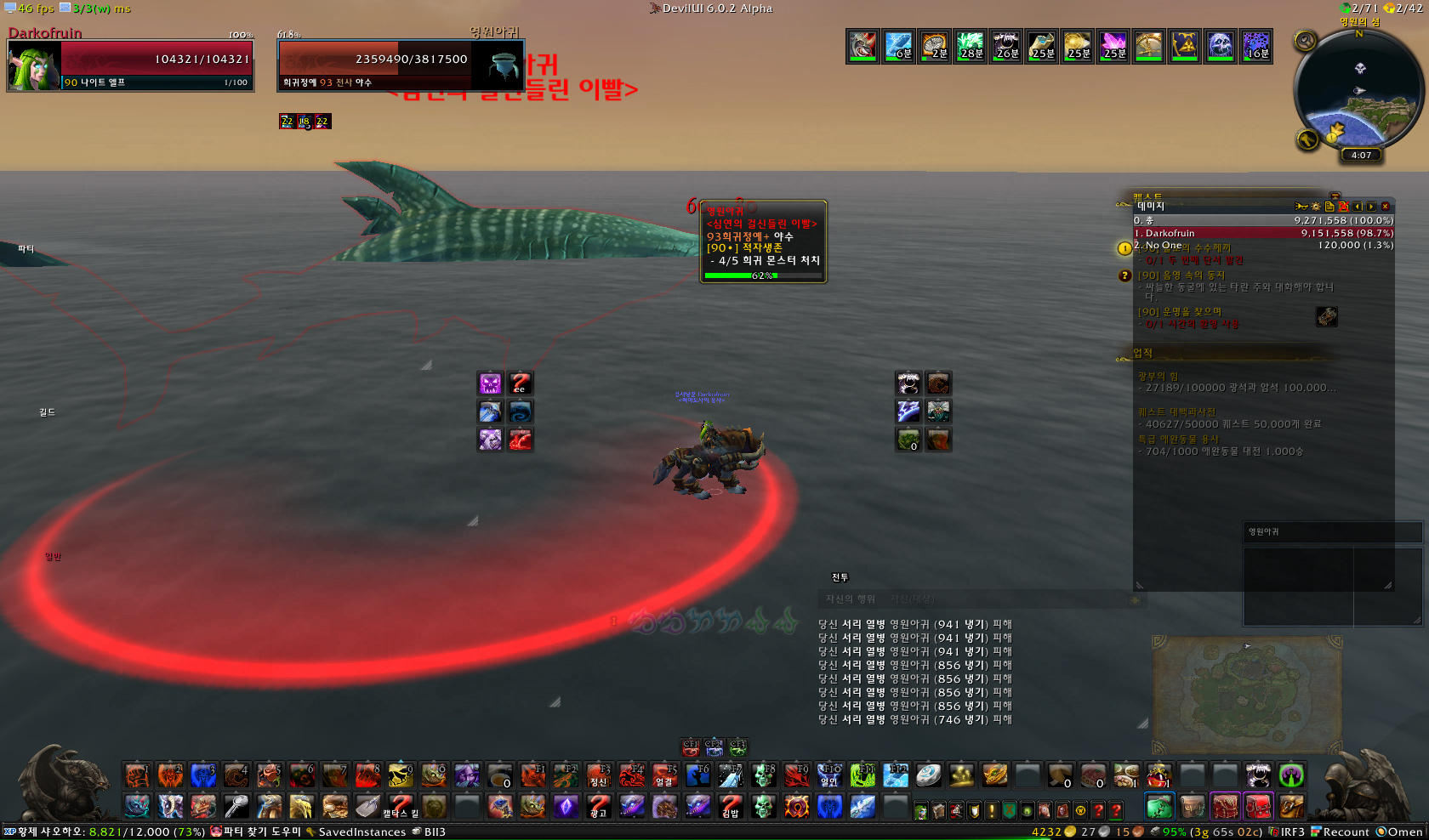 아르거스 희귀 네임드 사부울 112레벨 정예 살쾡이 마크아리 쪽에 존재 별건 없다 탱킹펫 있으면 솔플도 충분히 가능 또렷한 의식의 투레크 얘도 호구 필드 레이드몹으로 가끔 젠되는 시바쉬 900레벨 에픽템을 드랍한다. 체력은 기본 4.7억이며 전투에 참여한 공격대원의 수에 따라 증가 사령관 베카야 으스러진 땅 제네다르에서 발견된다. 밖으로 밀어내는 스킬만 조심하면 별 다른 무리 없이 잡을 수 있다. 저 바닥은 플레이어가 맞으면 좀 아프다. 부관 자카아르 스비락스의 대리인이라고 나와 있는데, 이 스비락스는 안토러스 레이드에서 중간보스로 볼 수 있다. 부패의 포효(중첩당 최대 생명력 10%감소 최대 5중첩)를 쓰므로 솔플하다 맞아죽을 위험이 있다. 펫도 금방 녹음 공성전문가 보라안 구원호에서 내려가면 가장 처음에 볼 수 있는 희귀.. 와우/와우스샷 - 군단 2018.02.11